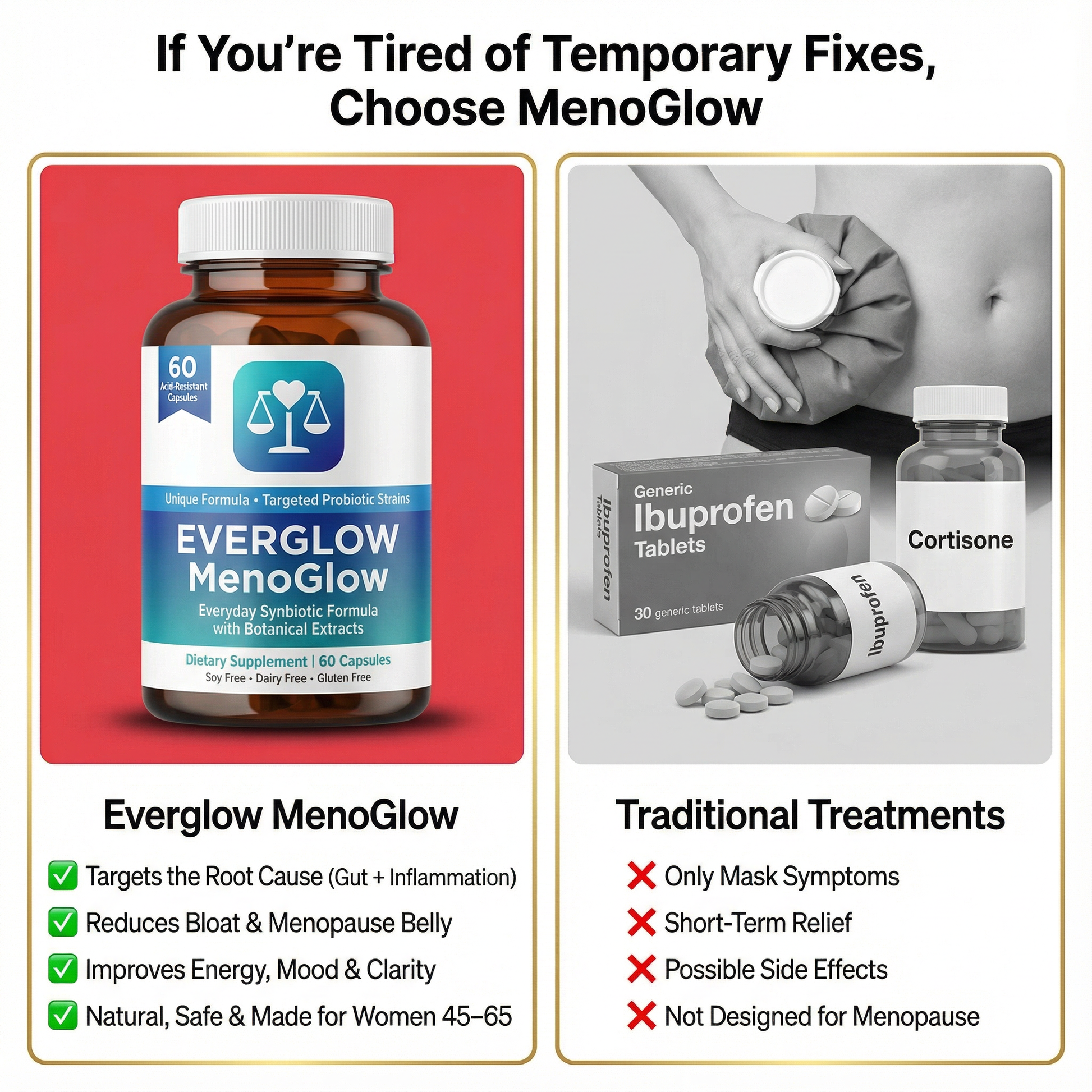 Try Everglow MenoGlow™ for a full 90 days (3 bottles). If you don't experience significant relief from bloating, better energy, improved mood, and visible belly reduction, simply email us. We'll refund your entire purchase. You keep the bottles. No return shipping. No questions asked.