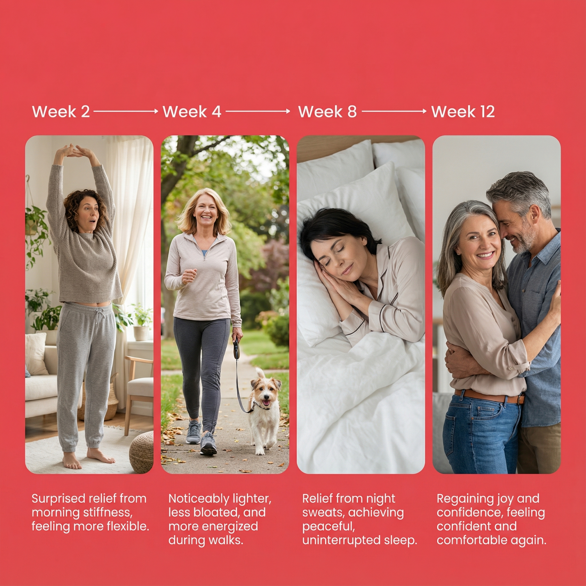 "3 inches off my waist in 8 weeks. Night sweats GONE. I feel like myself again."