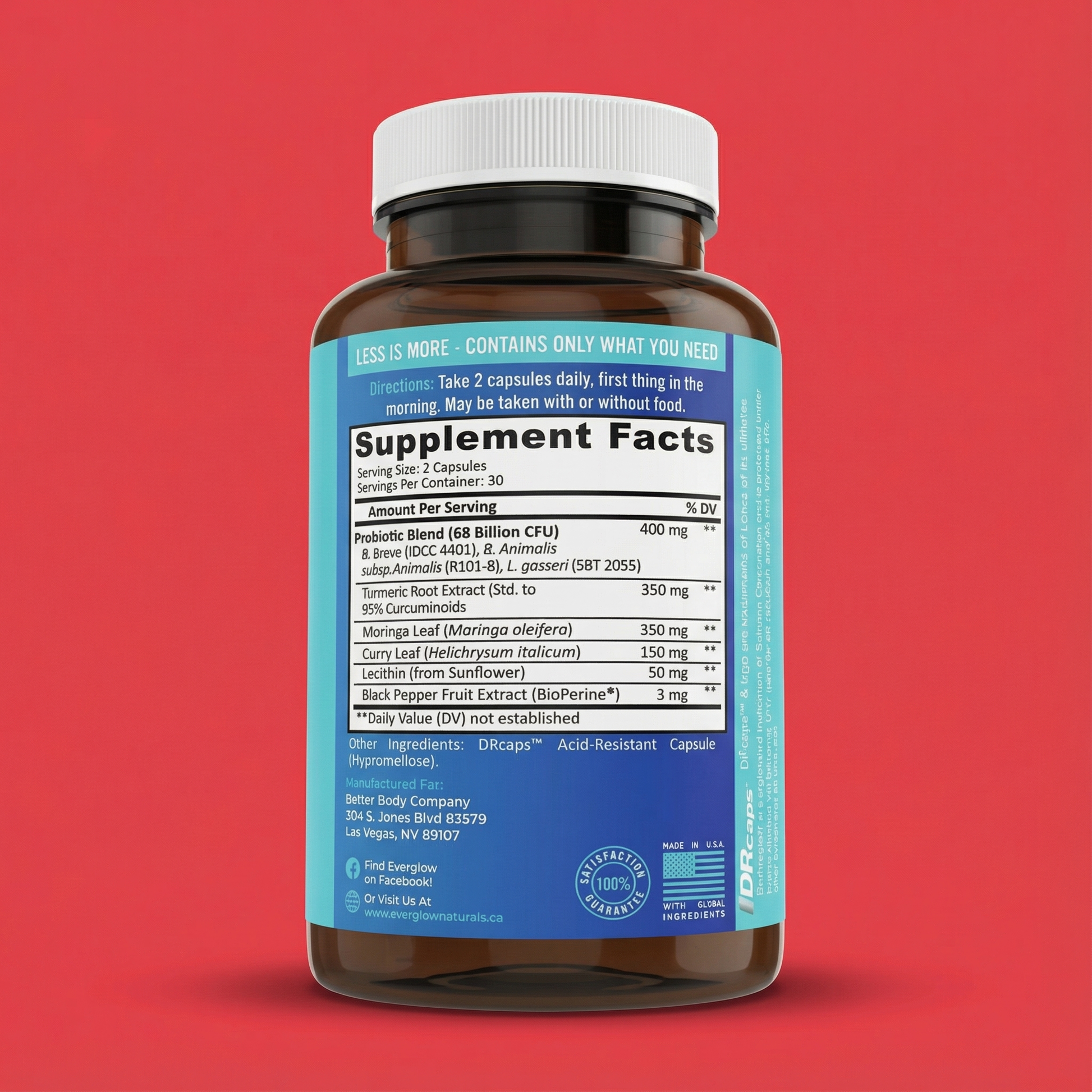 - 3 Clinically-Studied Strains: L. gasseri (belly fat), B. breve (metabolism), B. lactis (inflammation)